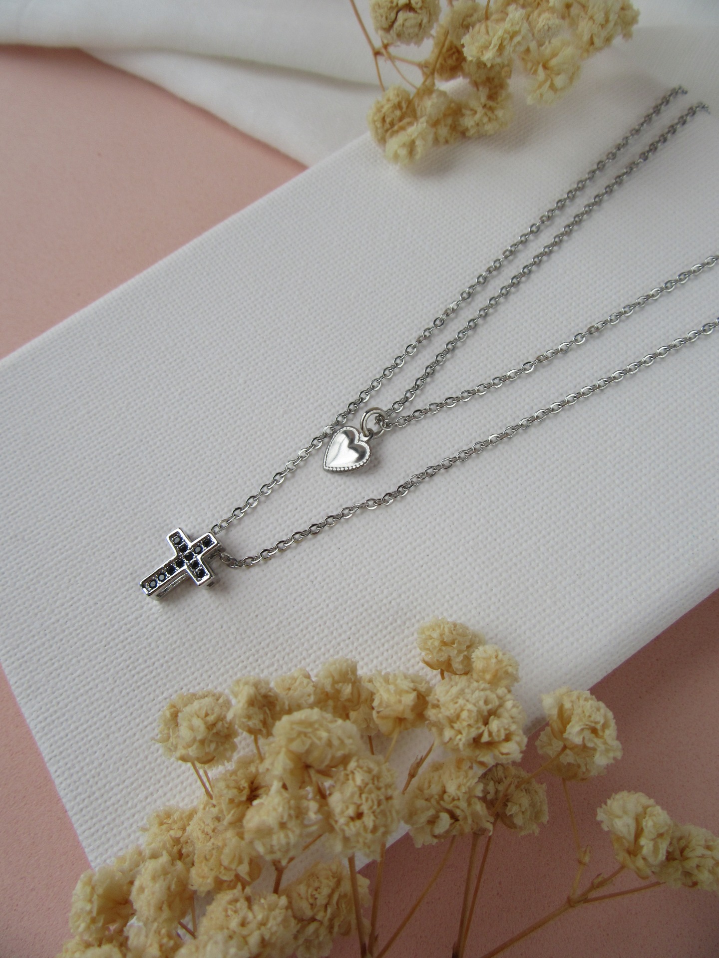 Colar Duplo com Cruz e Coração