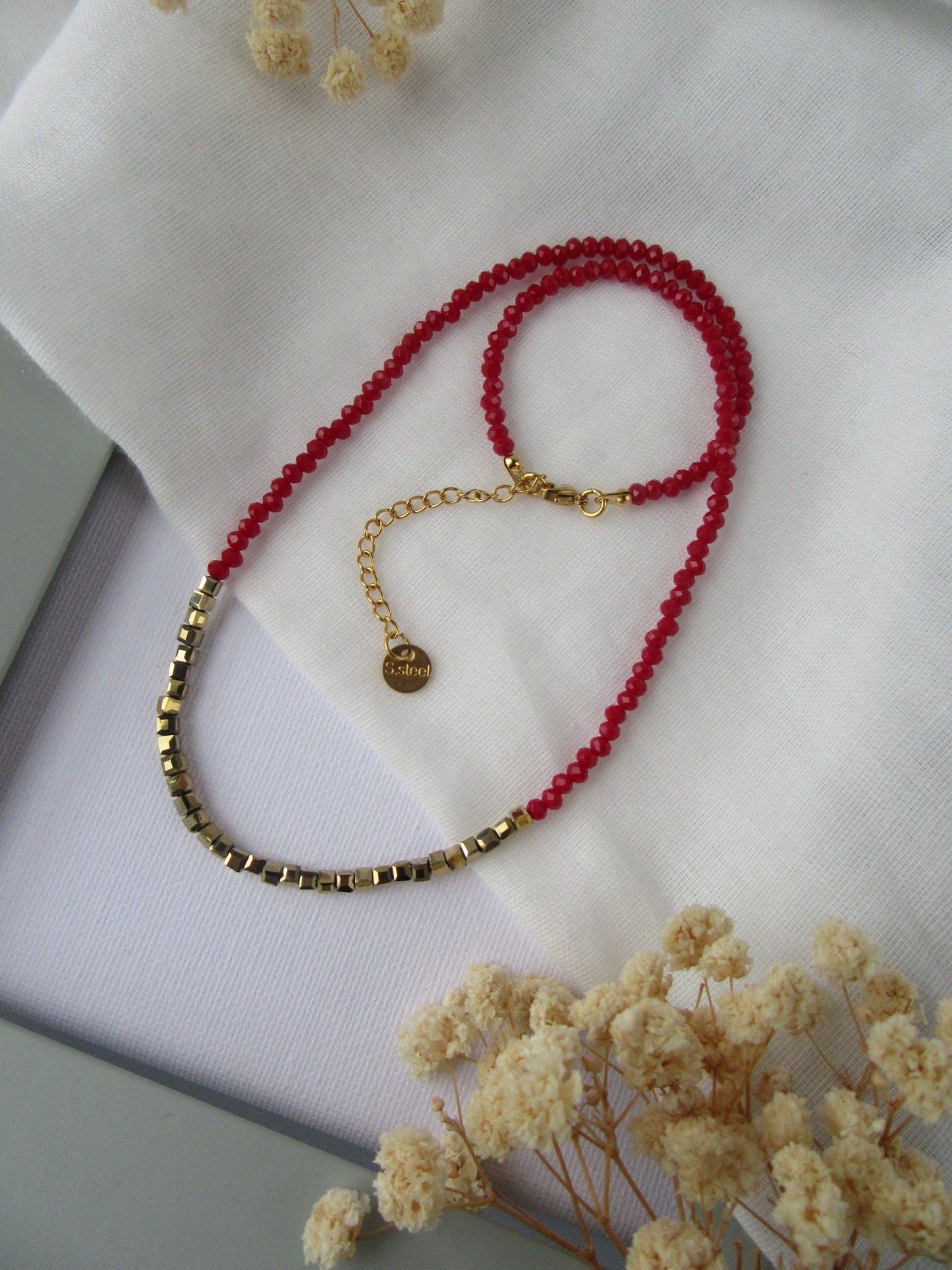 Colar Cristais Vermelhos e Dourados