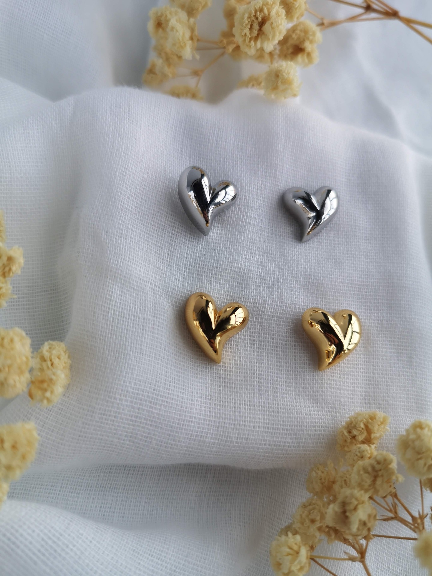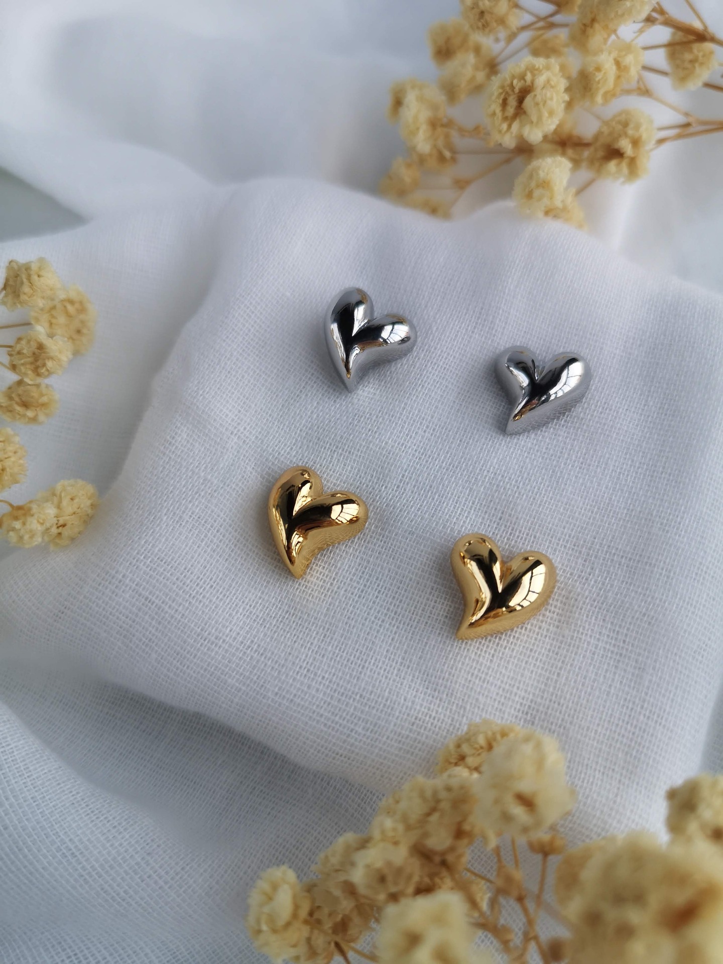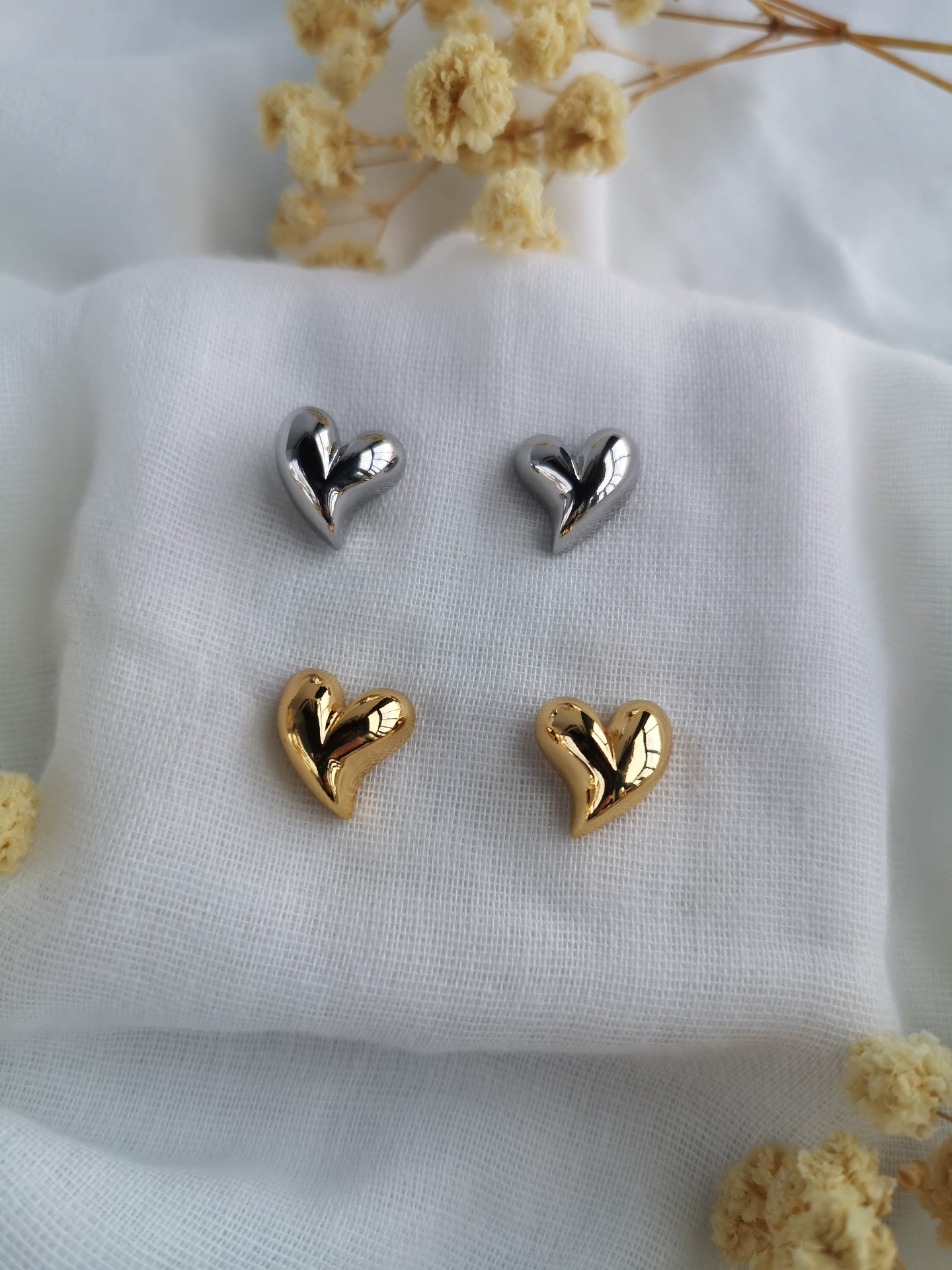 Brincos pequanos simples em forma de coração em aço inoxidável.