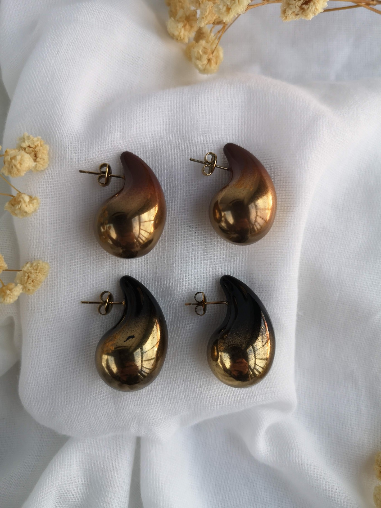 Brincos em forma de gota grande em aço inoxidável.