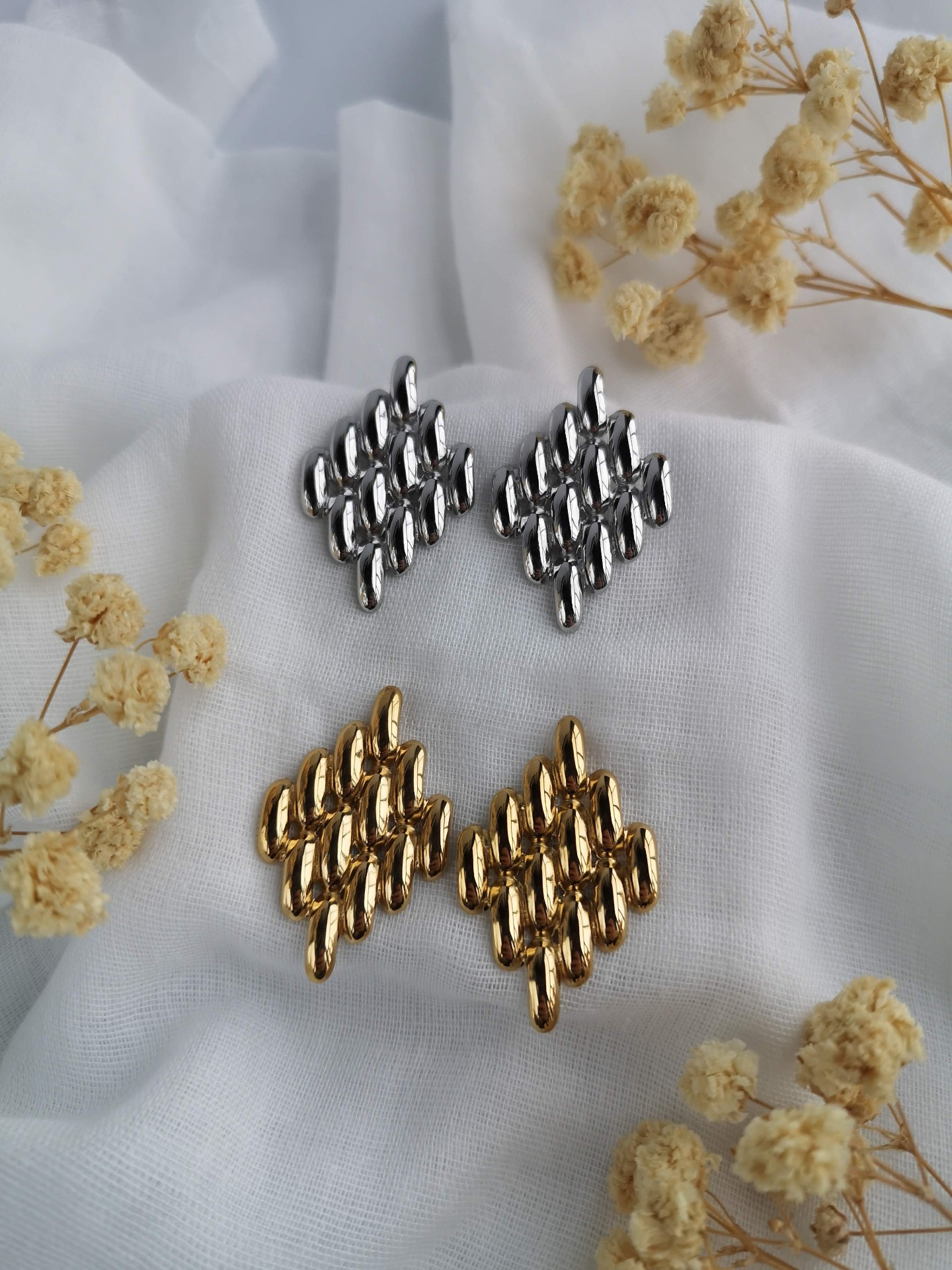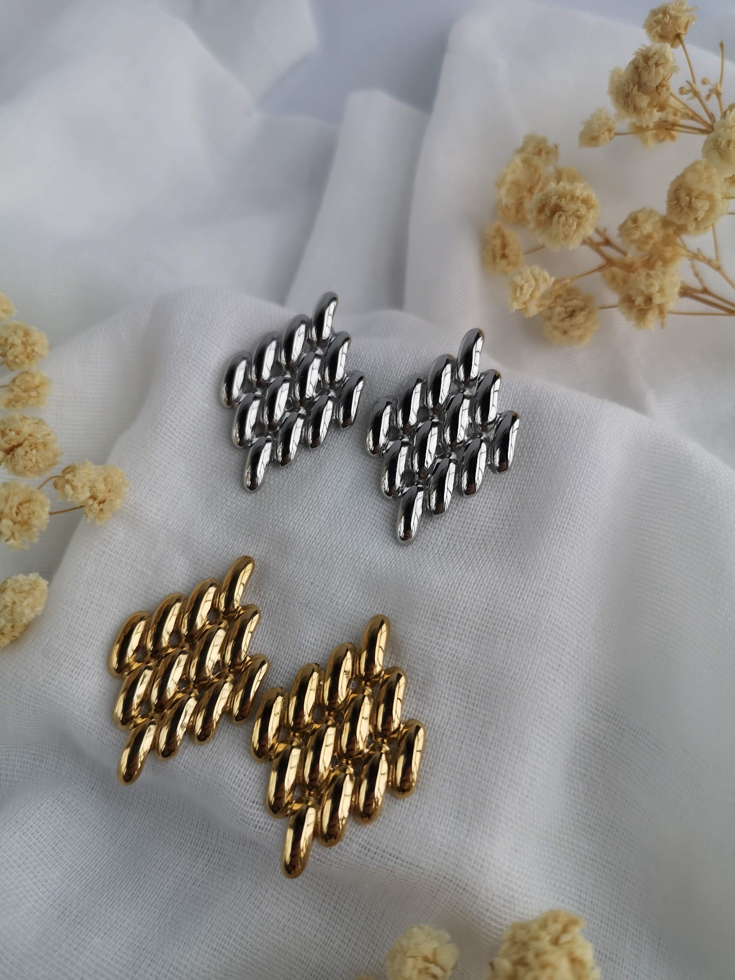 Brincos em forma de xadrez em aço inoxidável.