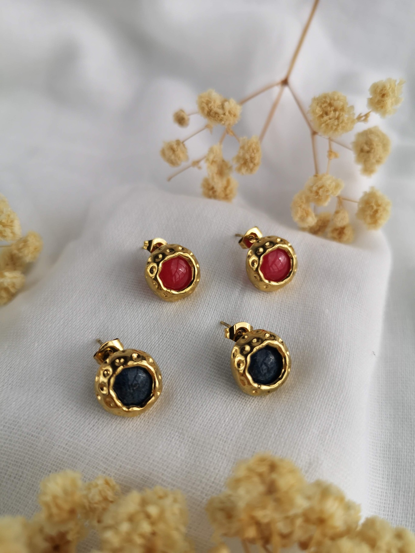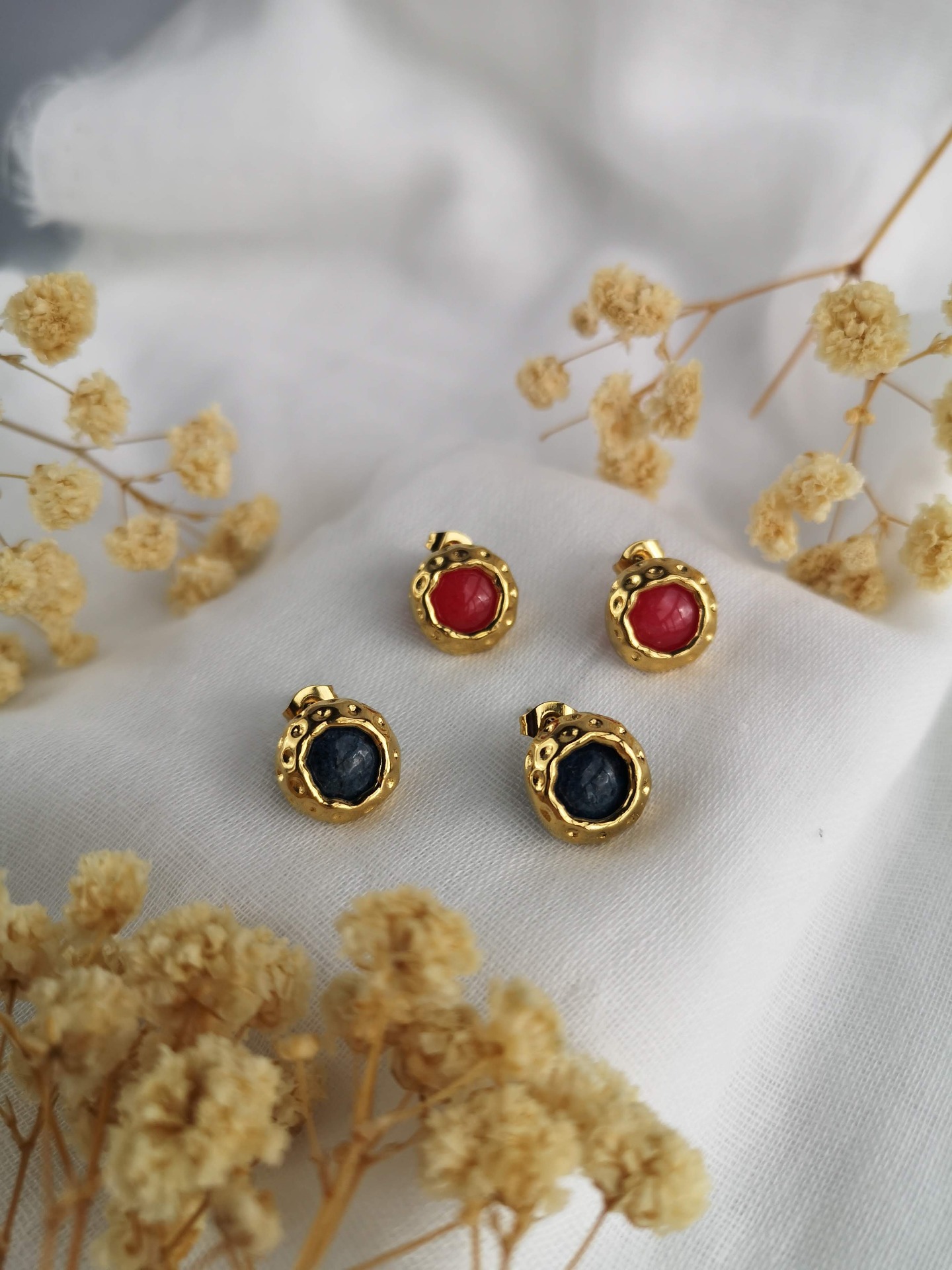 Brincos pequenos em aço inoxidável com pedra em cerâmica.