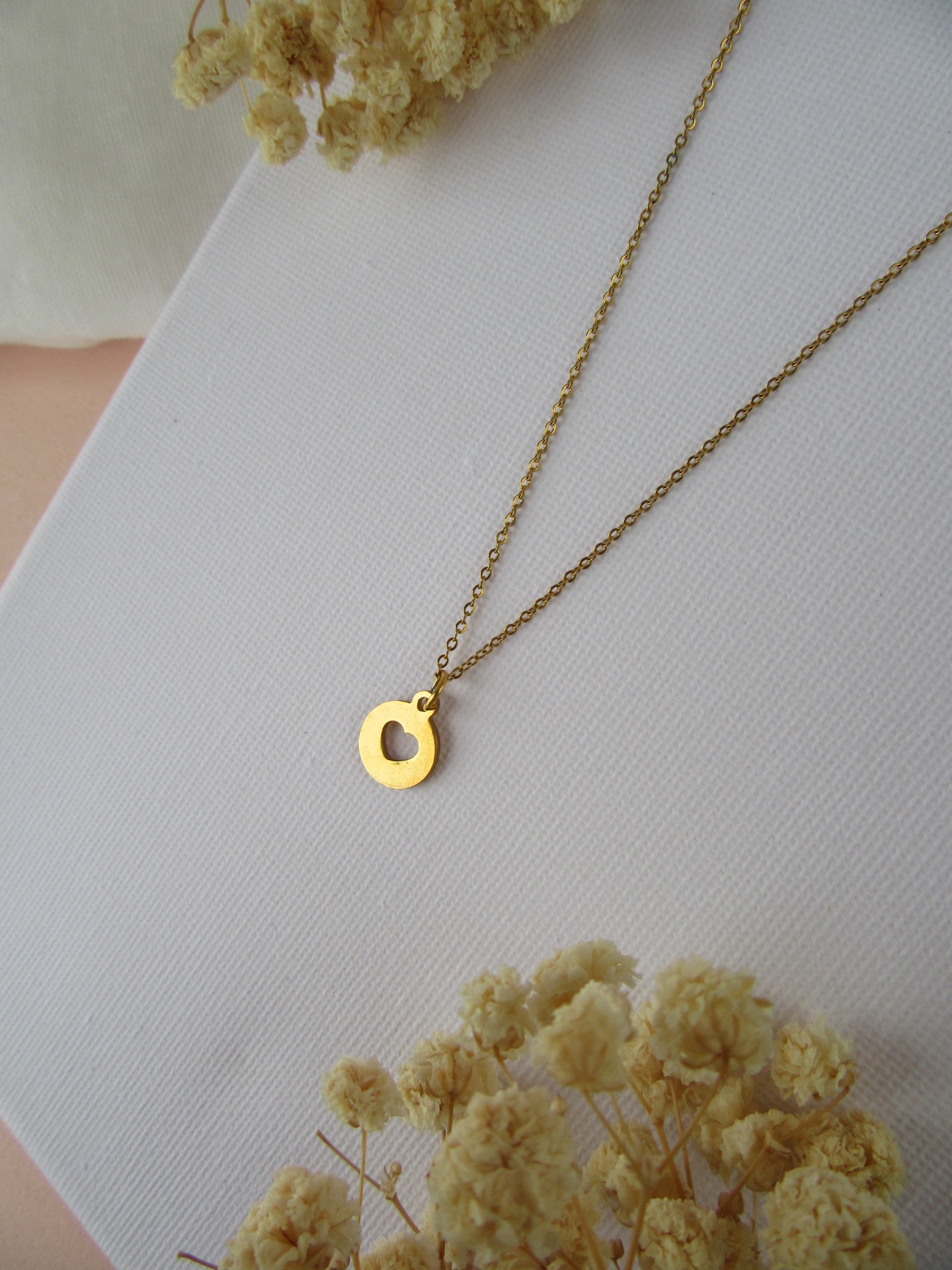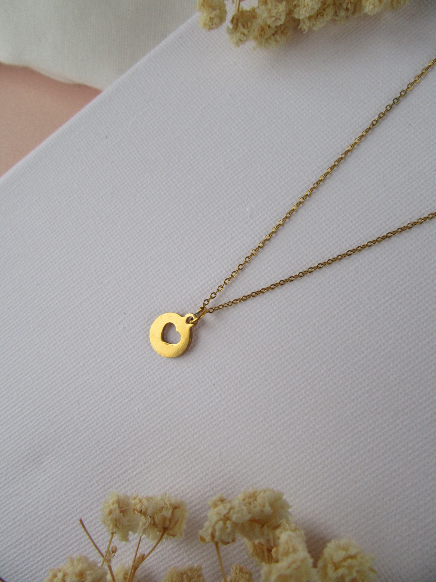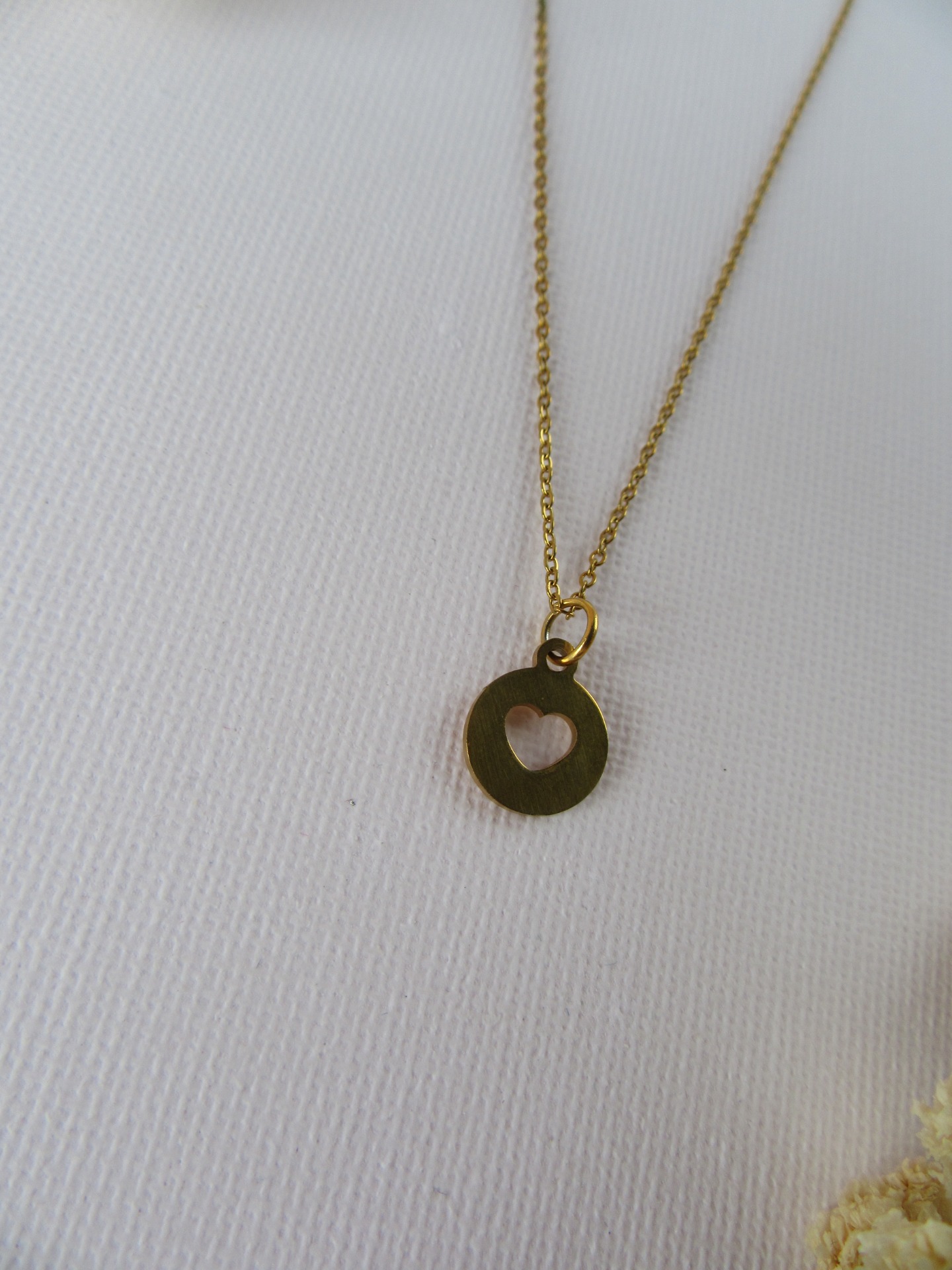 Colar simples feito à mão em aço inoxidável dourado, com medalha coração e com extensor de 5 cm garatindo o