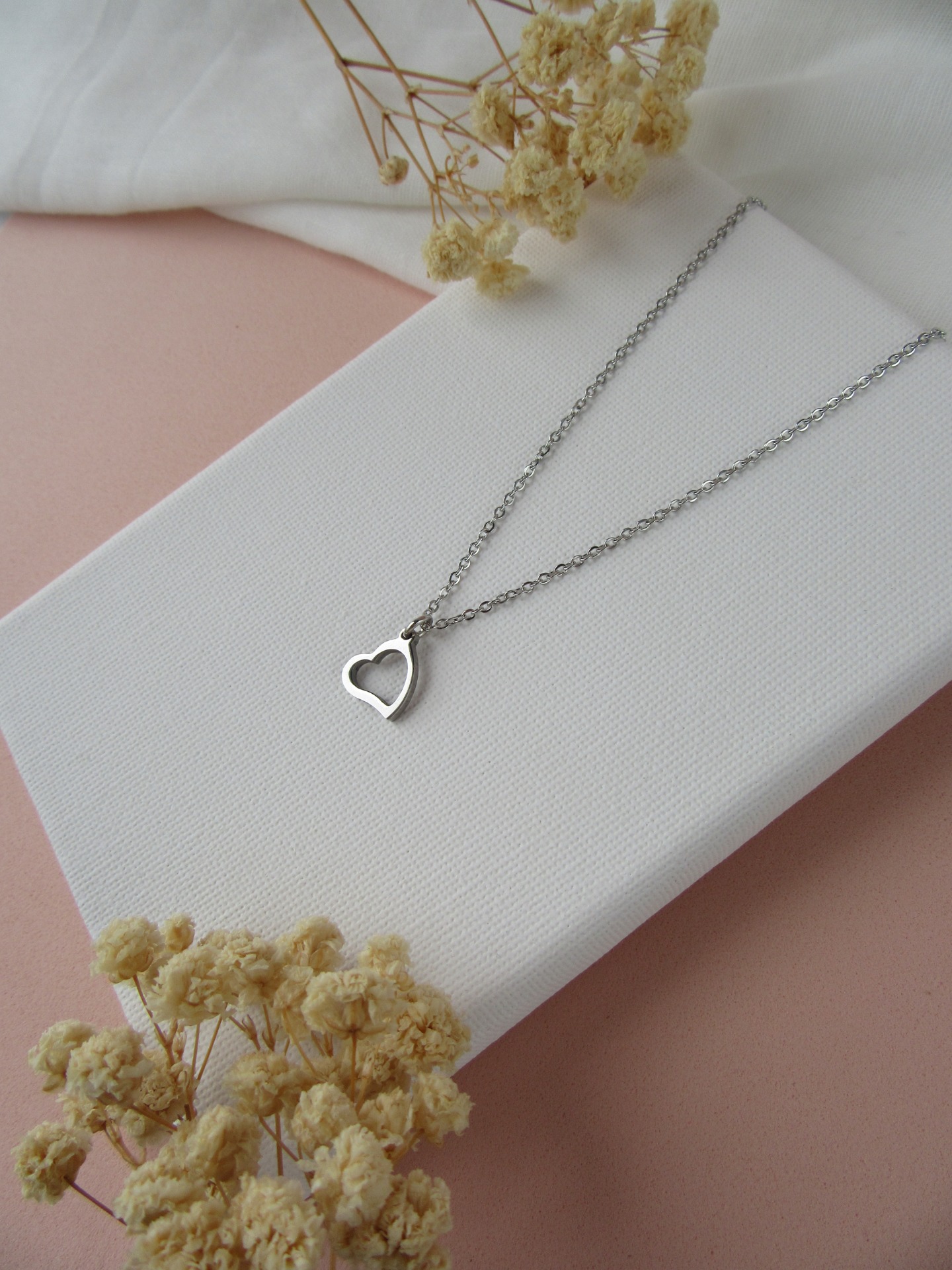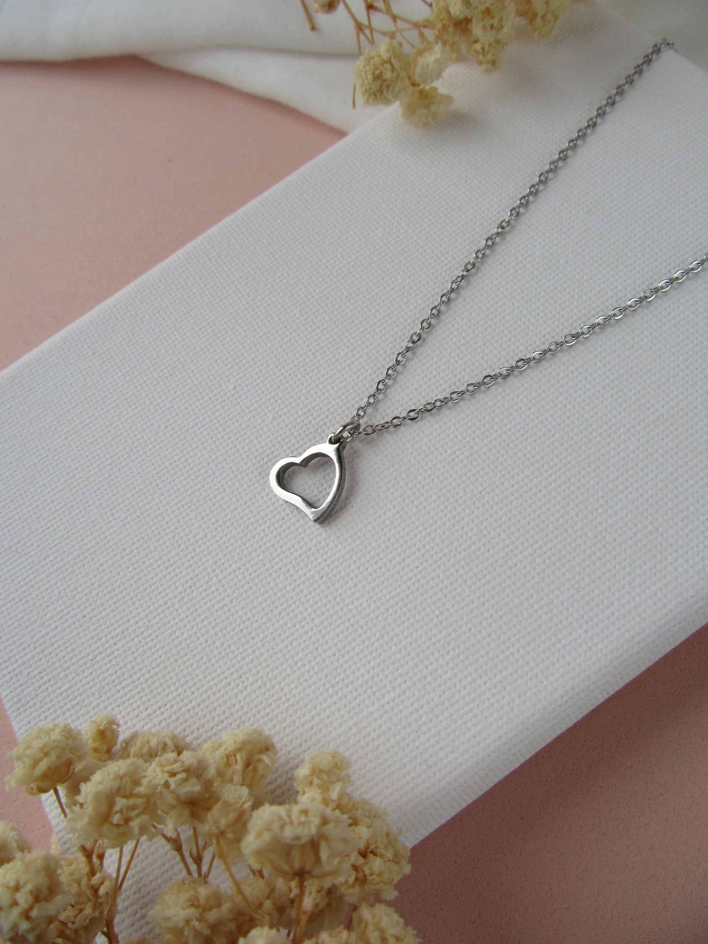 Colar simples em aço inoxidável prateado com medalha coração e com extensor de 5 cm garatindo o ajuste perfeito, a durabilidade e o conforto.