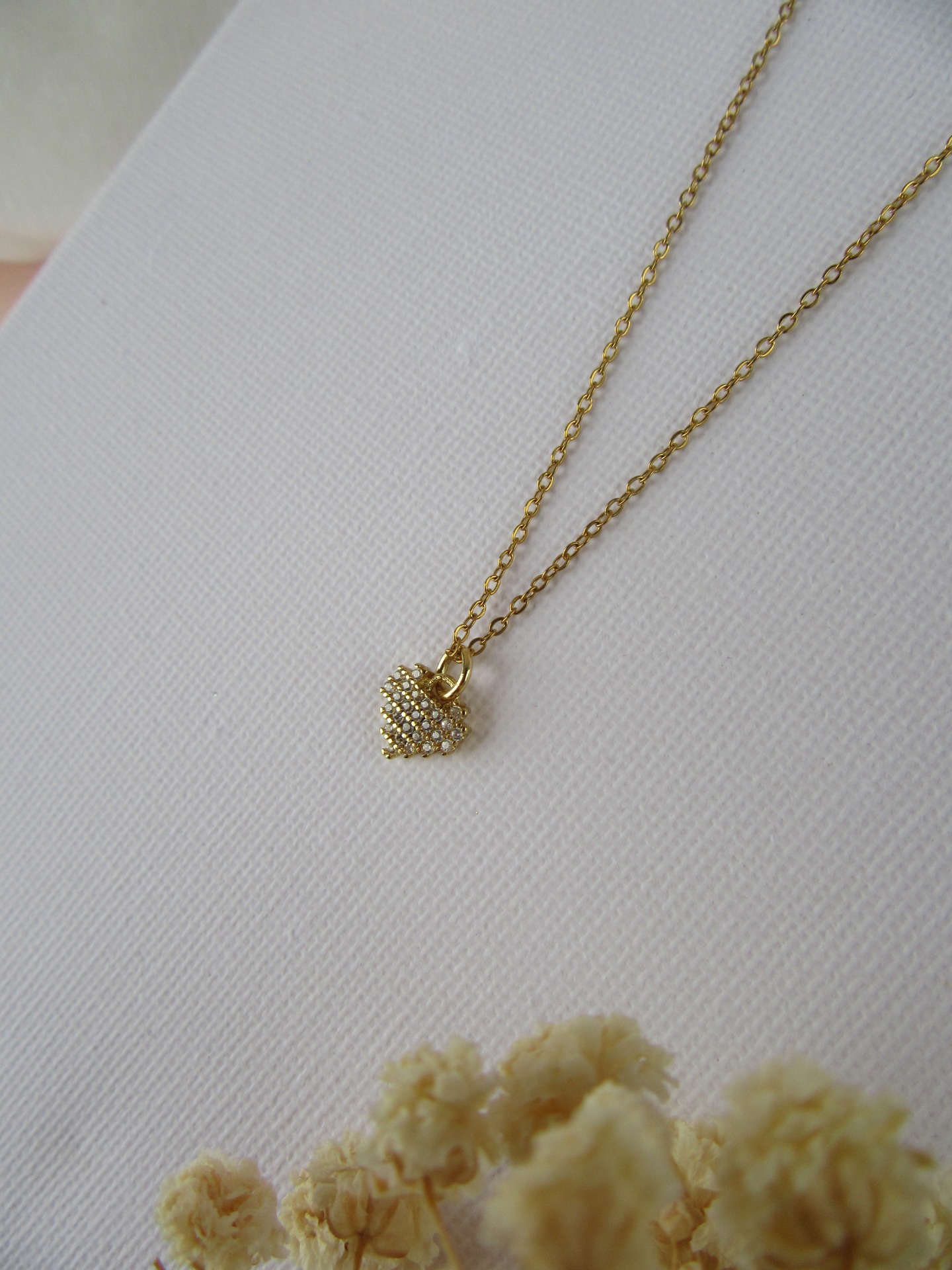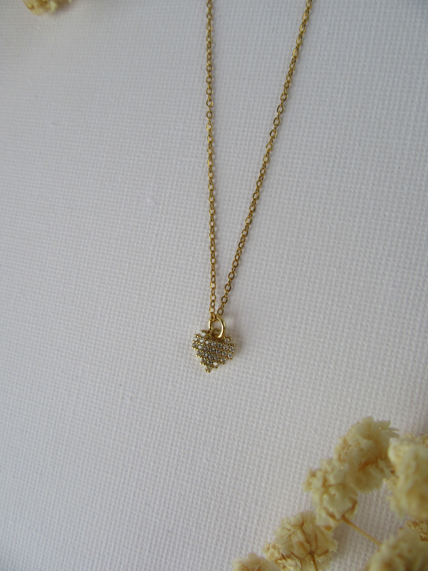 Colar simples feito à mão em aço inoxidável dourado, com medalha coração com zircónias e com extensor de 5 cm garatindo o ajuste perfeito, a durabilidade e o conforto.