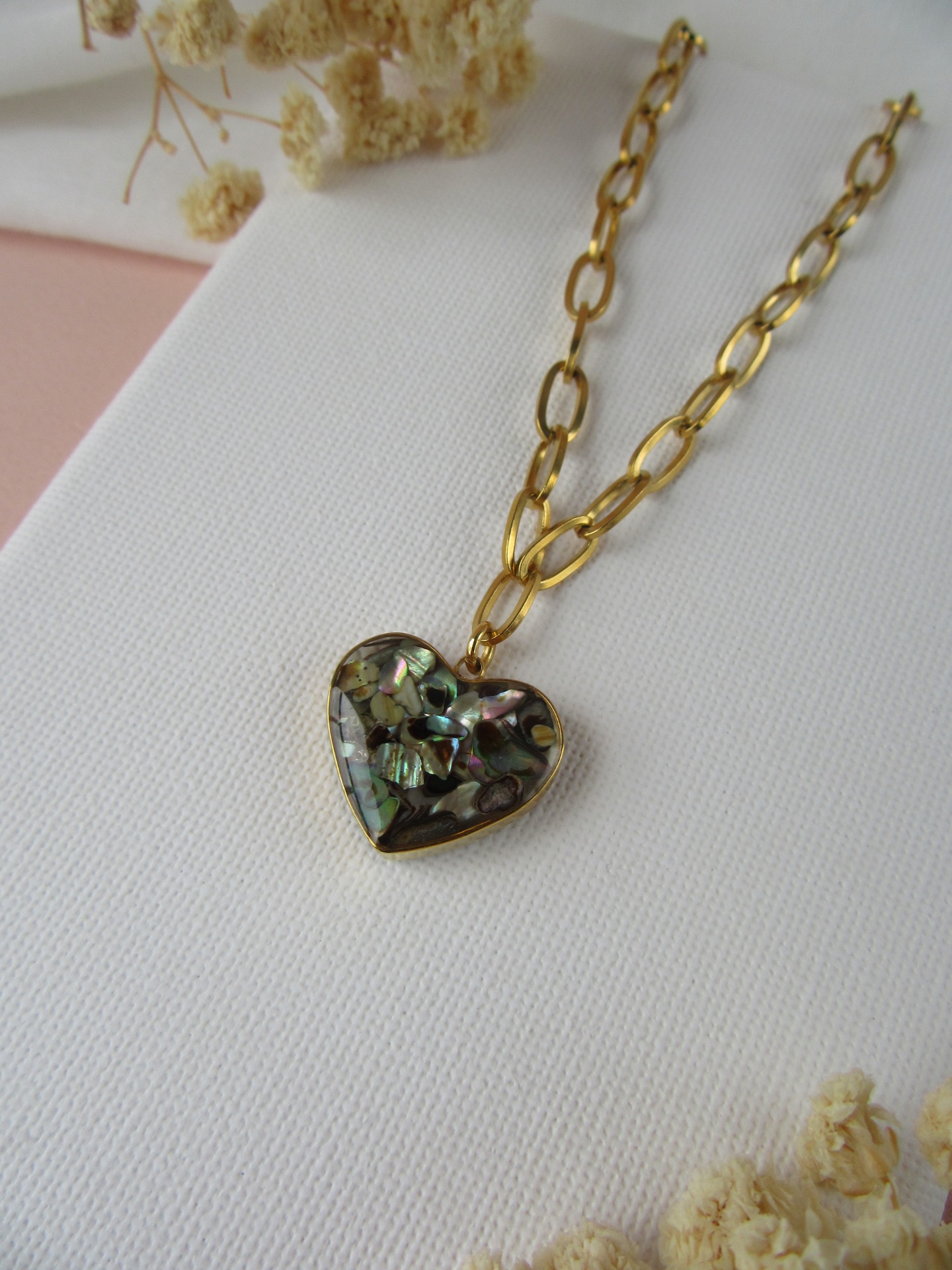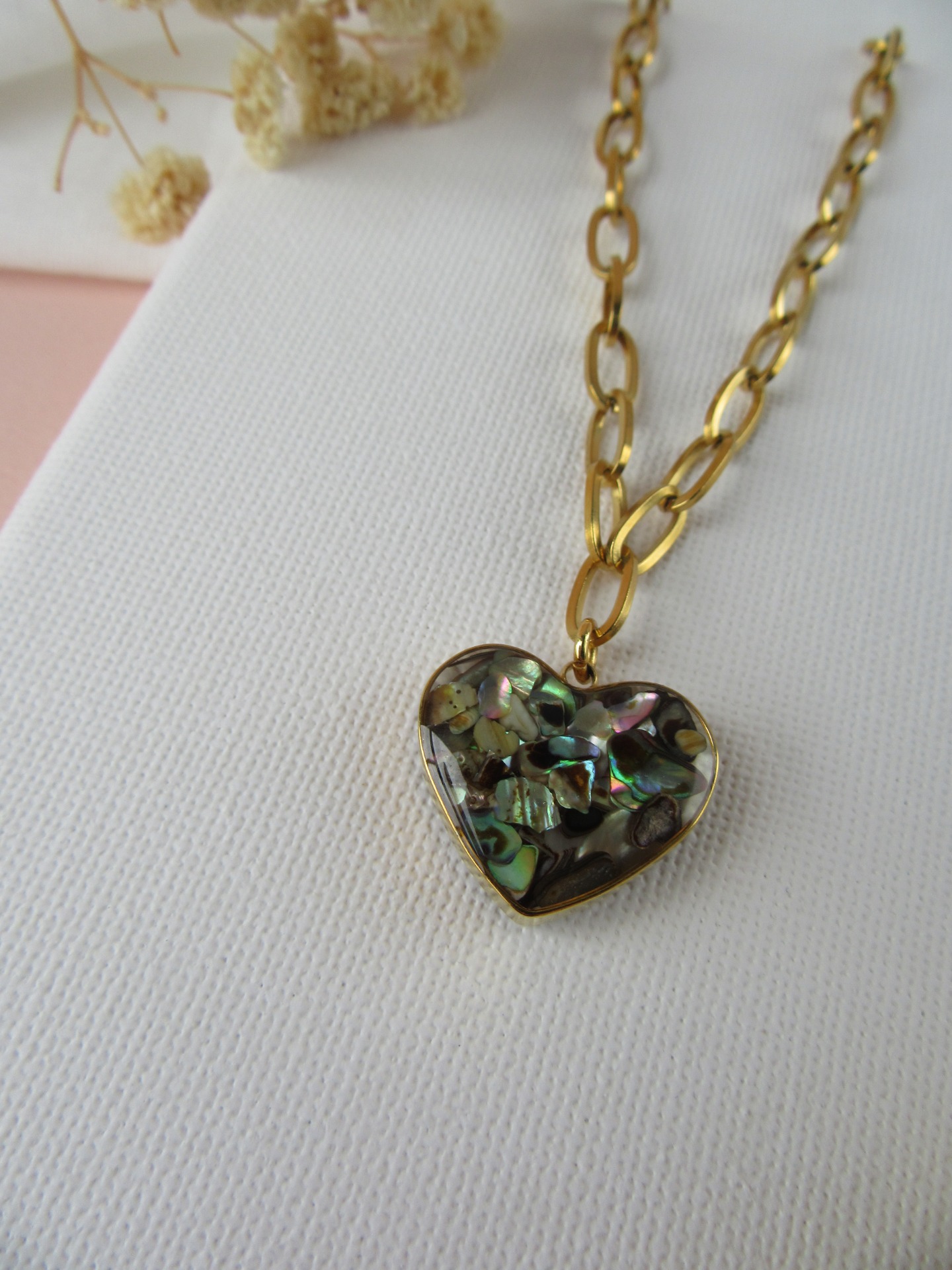 Colar simples feito à mão em aço inoxidável dourado, com medalha com pedra neutra em forma de coração e com extensor de 5 cm garatindo o ajuste perfeito, a durabilidade e o conforto.