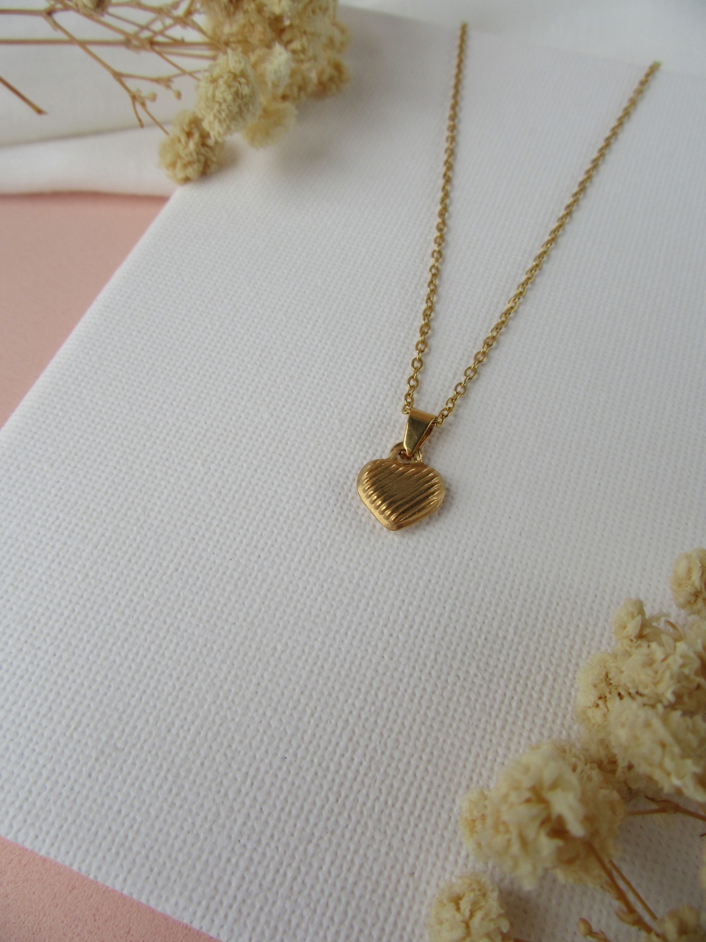 Colar simples em aço inoxidável dourado com medalha coração e com extensor de 5 cm garatindo o ajuste perfeito, a durabilidade e o conforto.