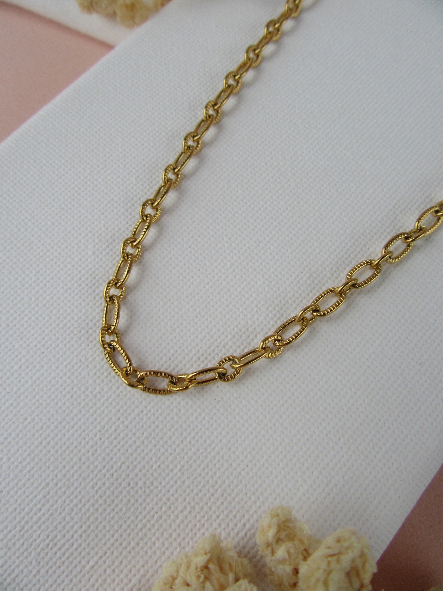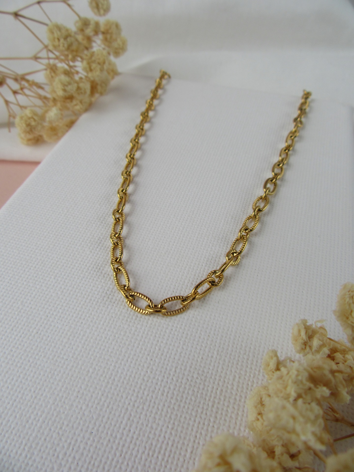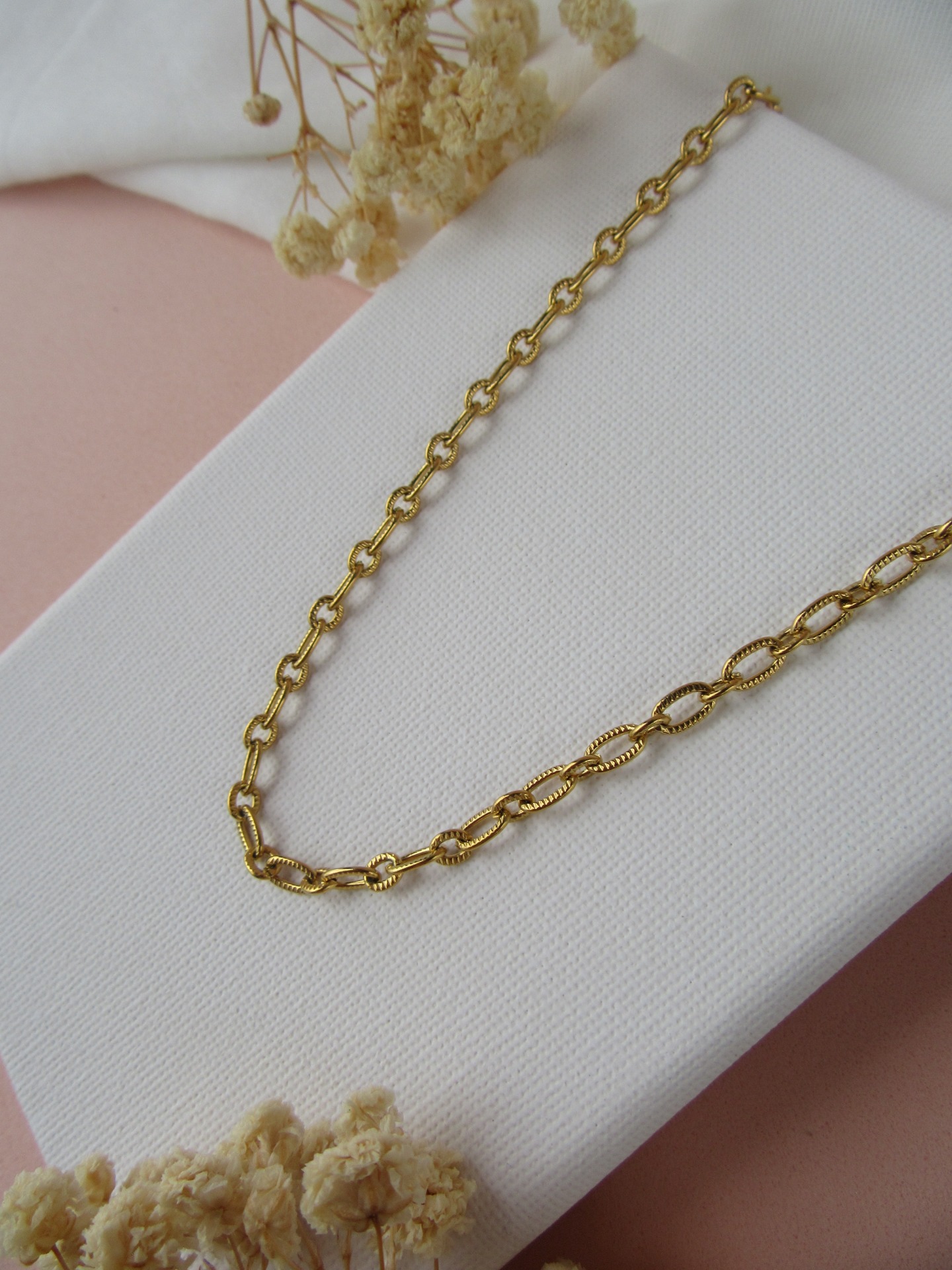 Colar simples em aço inoxidável dourado com extensor de 5 cm garatindo o ajuste perfeito, a durabilidade e o conforto.