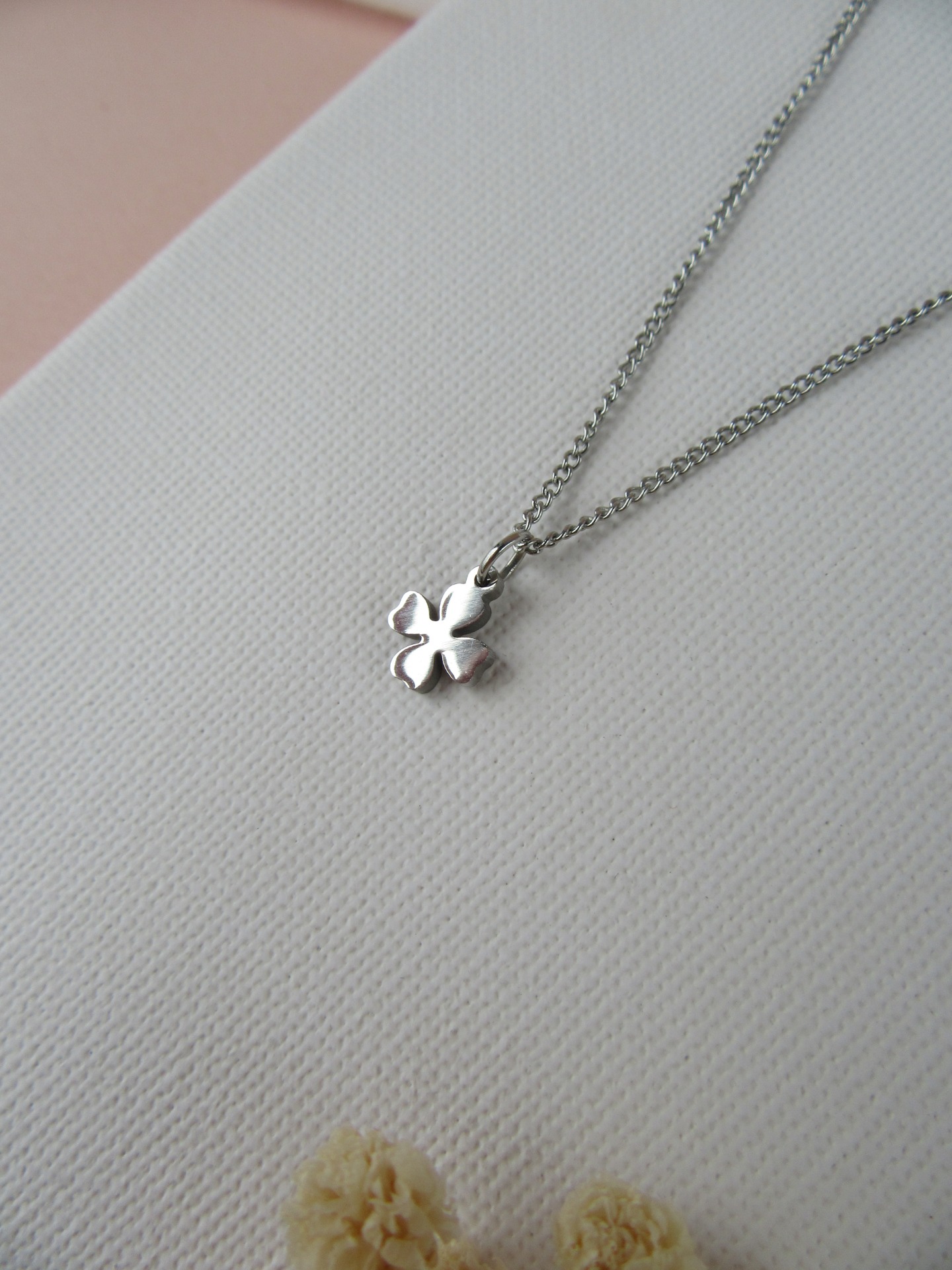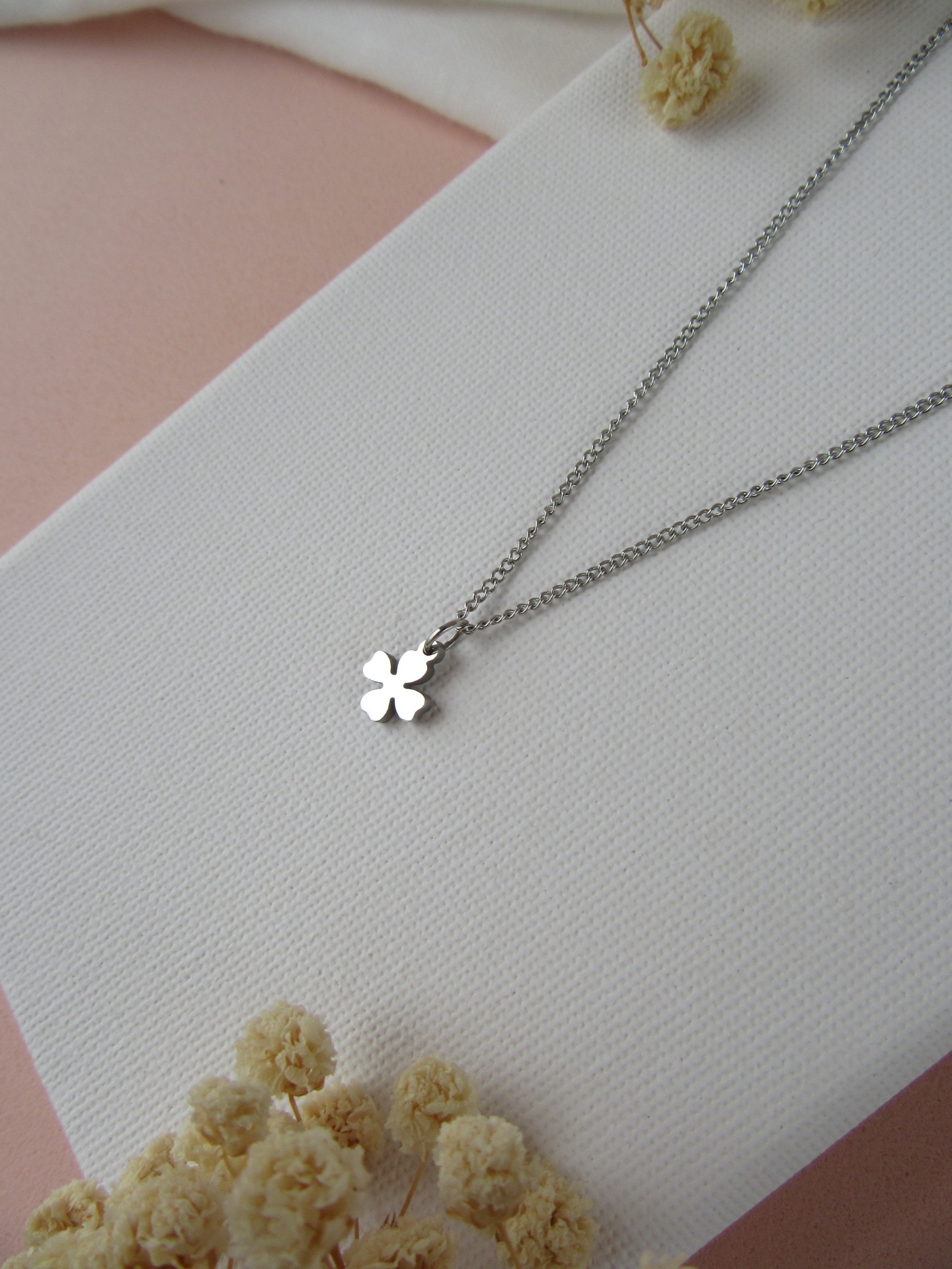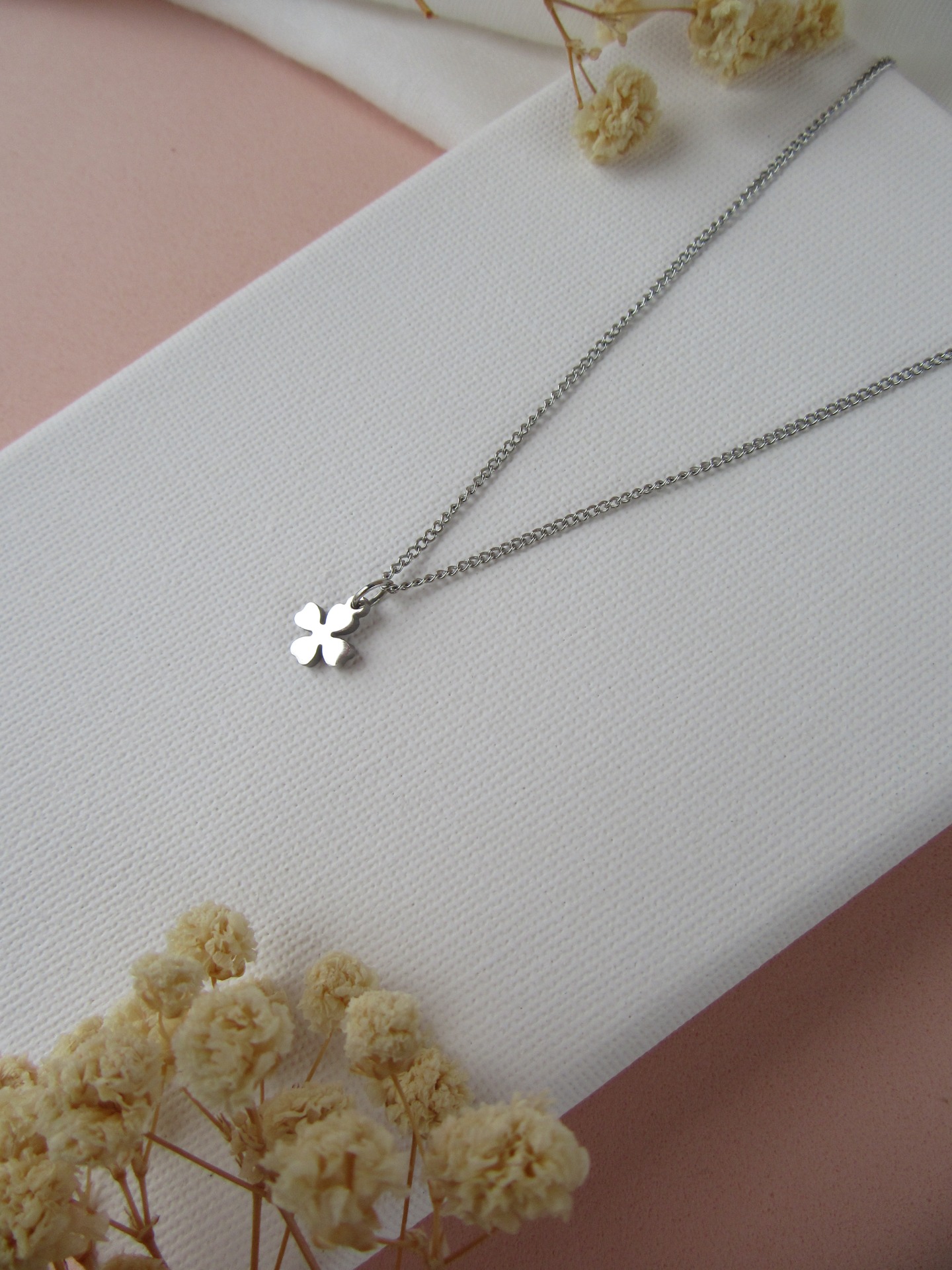 Colar simples em aço inoxidável prateado com medalha trevo e com extensor de 5 cm garatindo o ajuste perfeito, a durabilidade e o conforto.