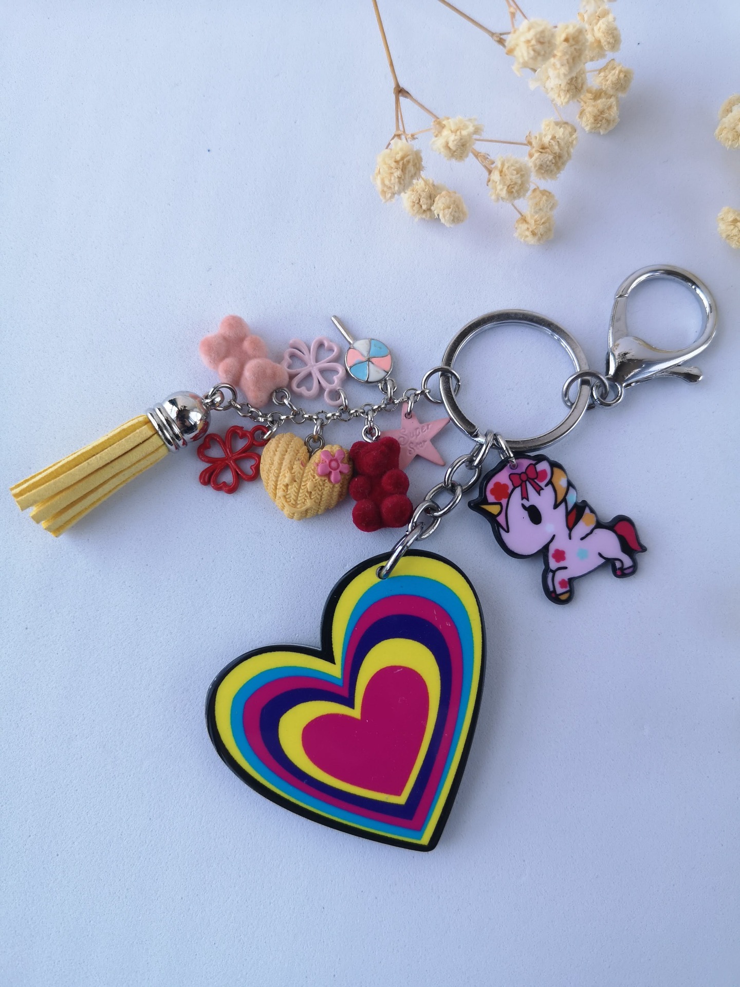 Porta-chaves alusivo à magia dos unicórnios e ursinhos.