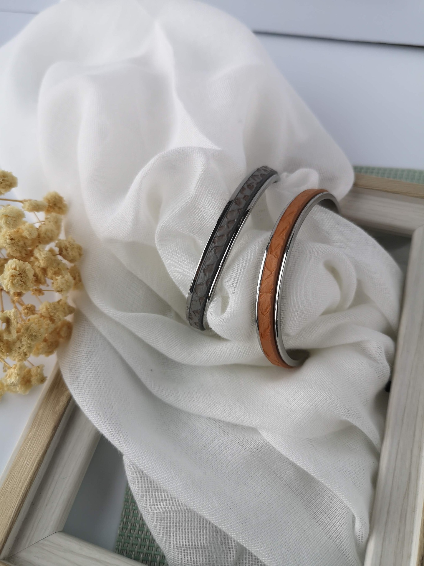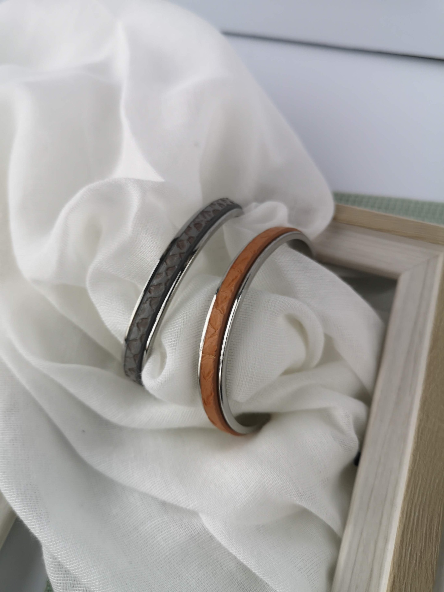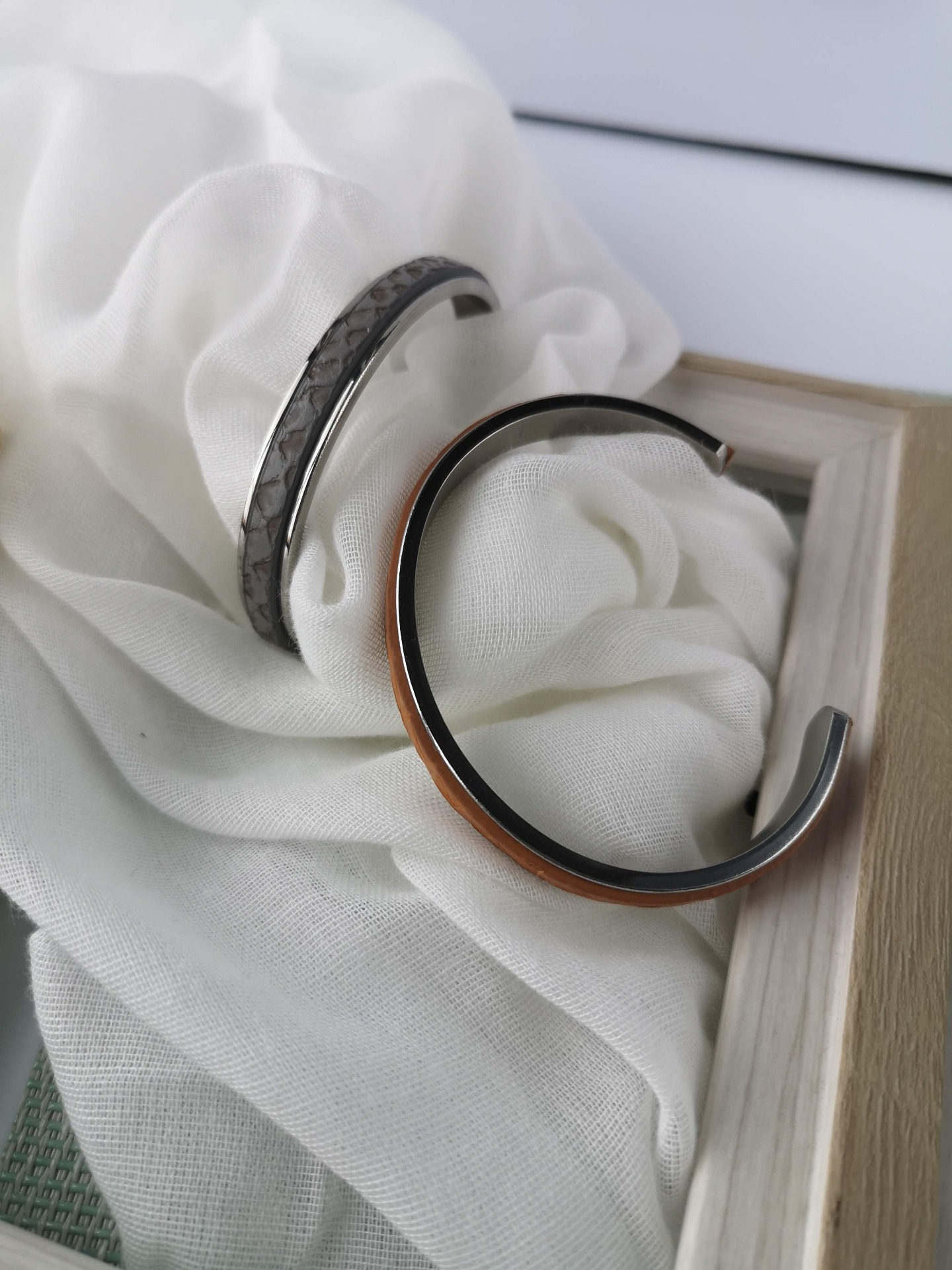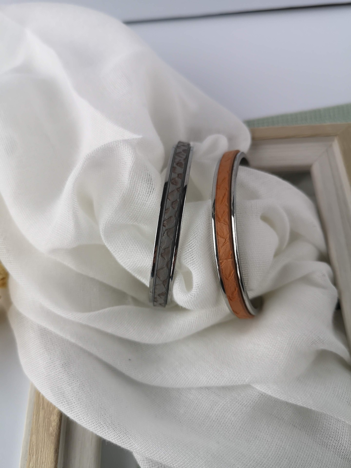 inoxidável, com detalhe em cabedal que lhe trazem um toque de cor e brilho à