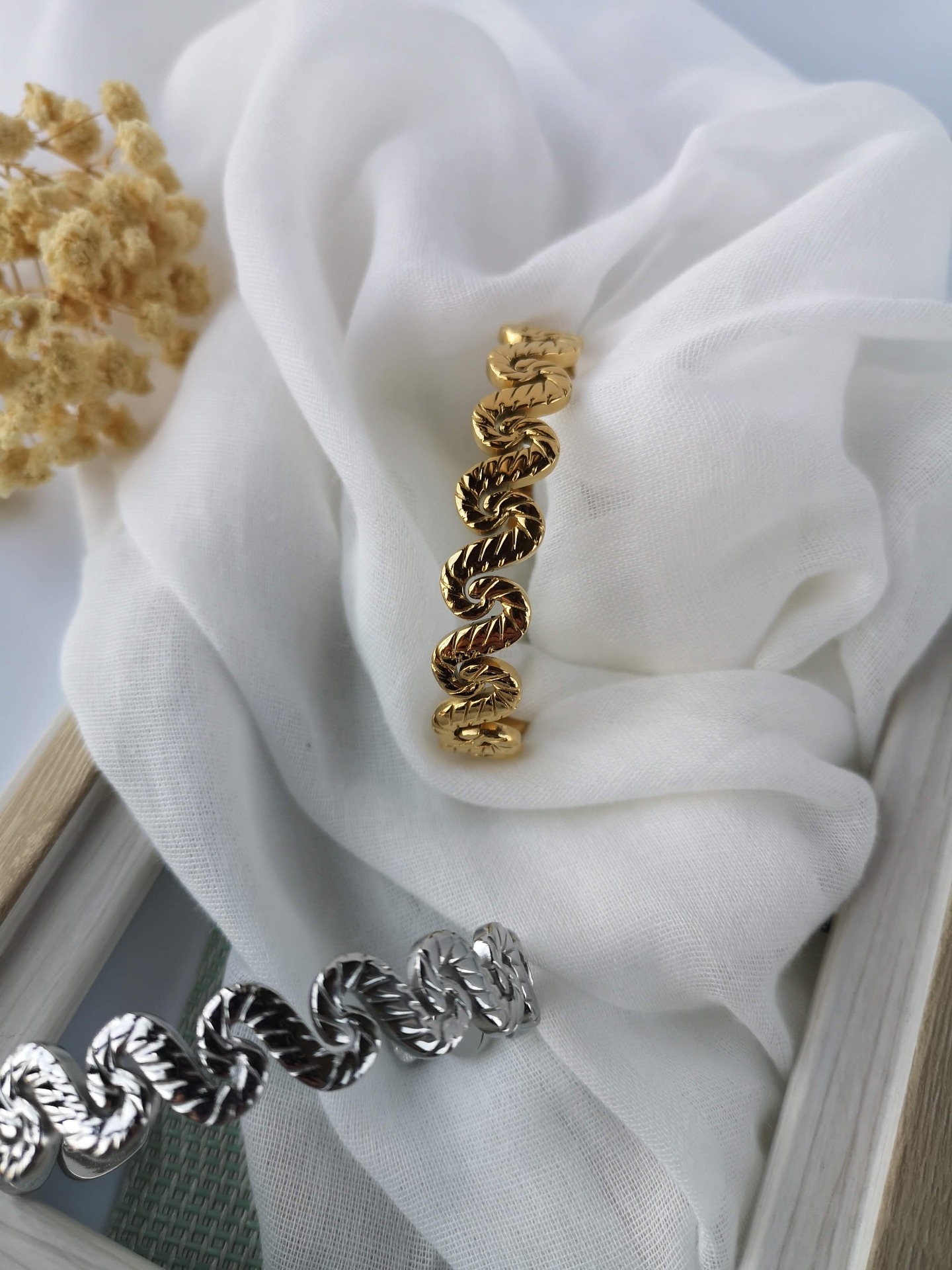Uma peça delicada, versátil, fácil de combinar e usar, confortável e que se adapta ao pulso, é uma pulseira pensada para acompanhar todos os momentos, do dia a dia aos looks mais especiais.
